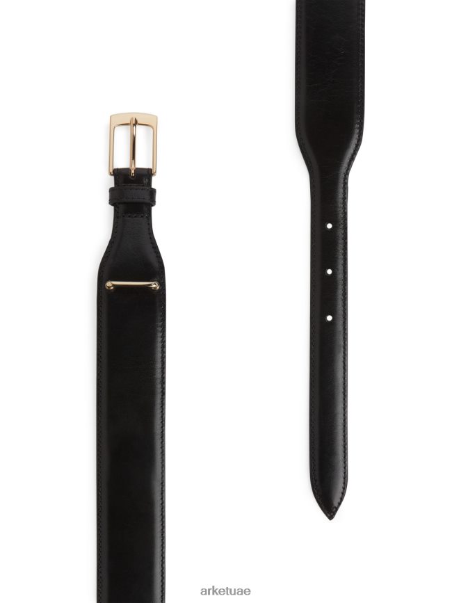 يتميز هذا الحزام بتصميم سميك ومبطن وإبزيم ذهبي اللون، وقد تم تصميمه ليتم ارتداؤه عند الخصر المرتفع. مصنوع في إيطاليا من الجلد الفاخر الذي خضع لعملية تسمير خالية من الكروم.