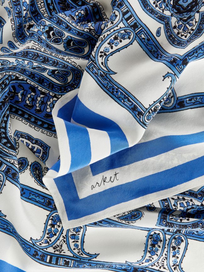 مُكَمِّلات عبد اللطيف ARKET نحيف وشاح حريري مطبوع أبيض/أزرق BXB848843