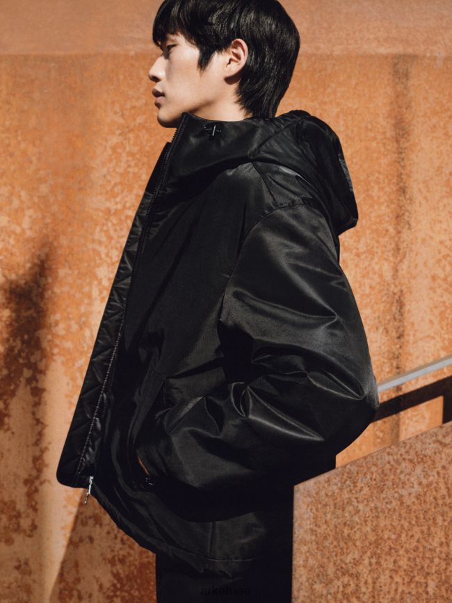 سترة بغطاء للرأس مصممة بقصة قصيرة تشبه الصندوق مستوحاة من السترات الواقية من الرصاص. يتميز ببطانة متوسطة الوزن وعالية النعومة وغطاء رأس قابل للتعديل وأساور أكمام لعزل ممتاز. تضيف فتحة السحاب ذات الاتجاهين والجيوب الواسعة والخياطة العلوية إحساسًا نفعيًا عصريًا. تفاصيل عاكسة.