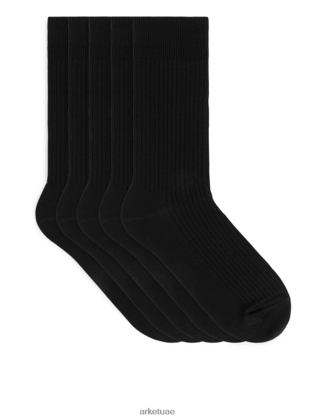 ملابس عبد اللطيف ARKET رجال جوارب سوبيما قطنية مضلعة 5 أزواج أسود BXB8481248