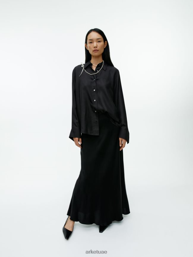ملابس عبد اللطيف ARKET نحيف قميص من نسيج قطني طويل أسود BXB84855