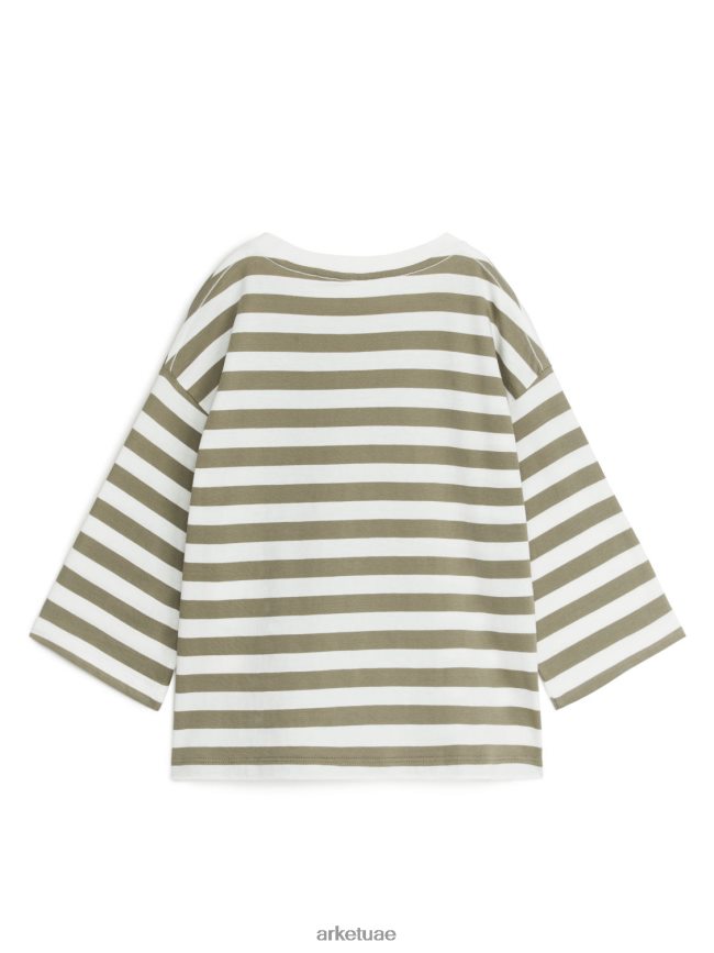 ملابس عبد اللطيف ARKET أطفال تي شيرت كبير الحجم بأكمام طويلة الكاكي الأخضر/أوف وايت BXB8481442