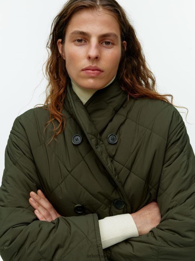 ملابس عبد اللطيف ARKET نحيف سترة مبطنة بياقة شال كاكي أخضر داكن BXB848450