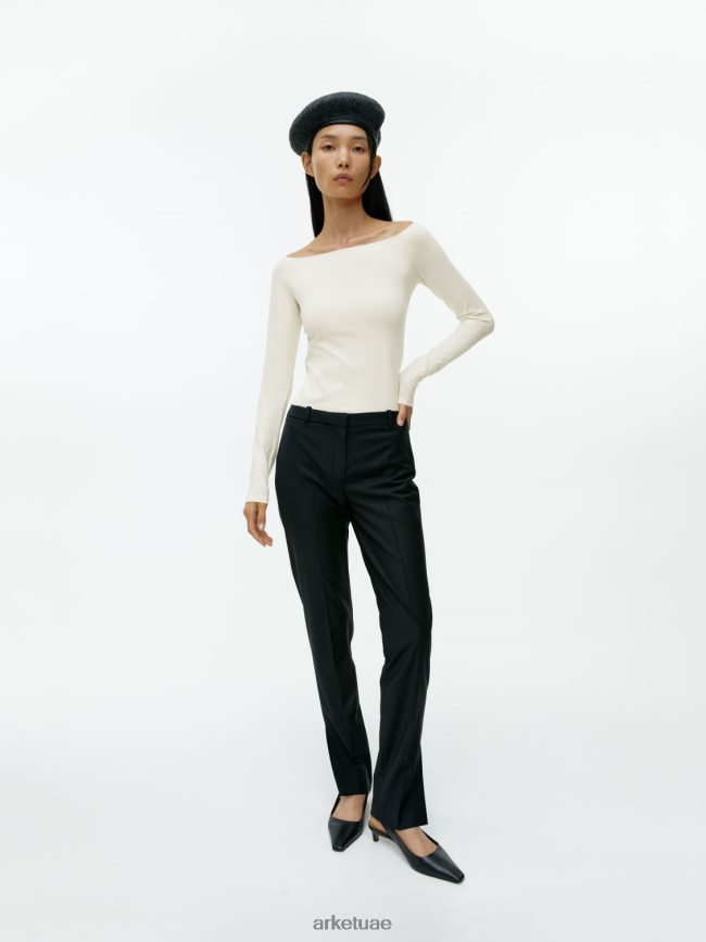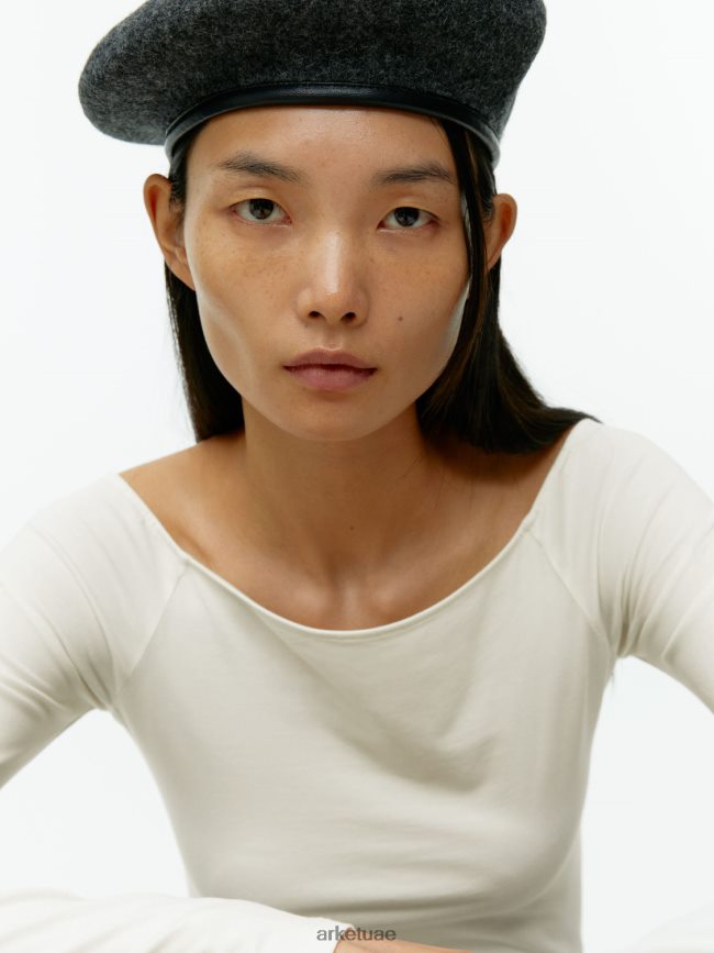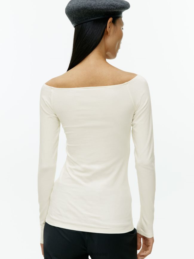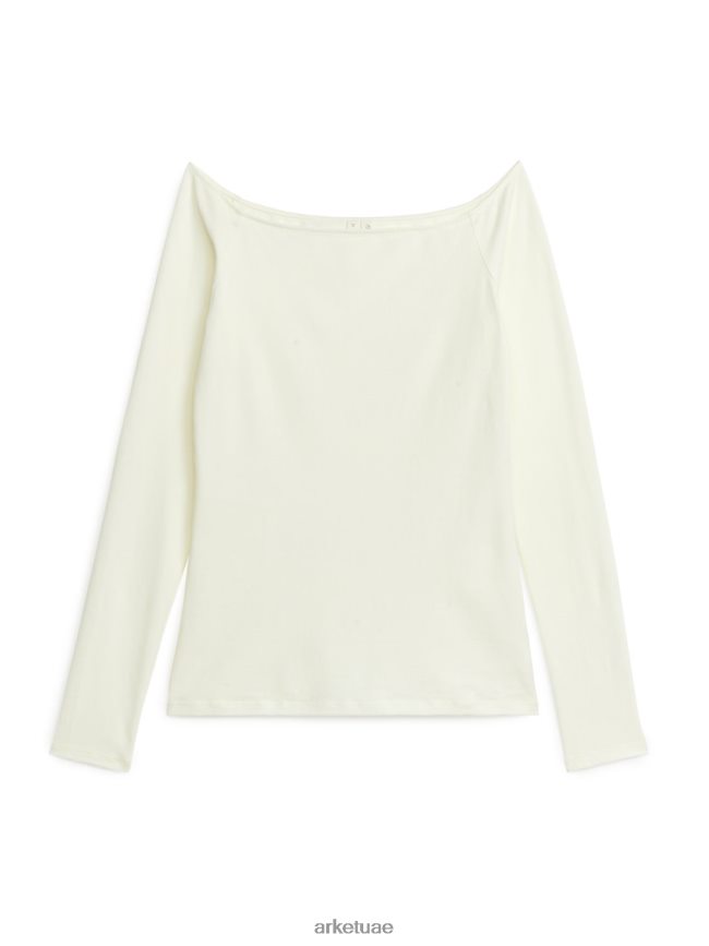 الجزء العلوي بدون أكتاف مخيط من جيرسي قطني واحد قابل للتمدد. طراز بأكمام طويلة وقصة ضيقة. خياطة مسطحة في نهاية الأكمام والحاشية السفلية.